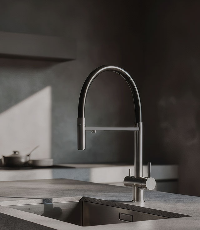 Premium-keittiöhanat ja -altaat, jotka tarjoavat sekä estetiikkaa että toiminnallisuutta. Minimalistisesta ruostumattomasta teräksestä näyttäviin mattamustiin ja harjattuihin kultaisiin malleihin: kokoelmamme yhdistää eurooppalaisen käsityötaidon käytännön sovellettavuuteen. Tutustu ulosvedettäviin keittiösuihkuihin, syviin ala-asennettaviin altaisiin ja graniittikomposiittivaihtoehtoihin eri väreissä. Jokainen tuote on valittu kestävyyden, vedensäästön ja ajattoman muotoilun perusteella, joka nostaa keittiösi korkeammalle tasolle.