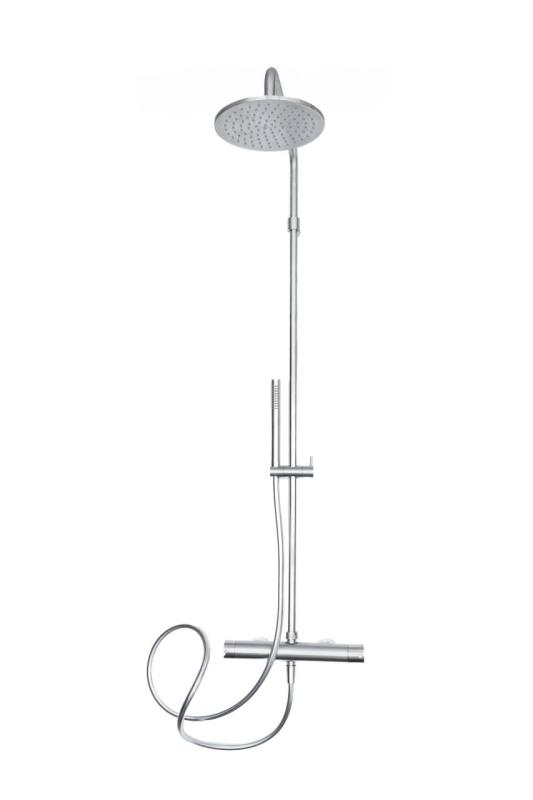 Suihkuyhdistelmä on valmistettu korkealaatuisesta messingistä ja viimeistelty kestävällä kromipinnoitteella. Tämä takaa ylellisen ulkonäön, erinomaisen kulutuskestävyyden ja pitkäaikaisen luotettavuuden. Termostaattisen sekoitushanan ansiosta veden lämpötila pysyy vakaana myös vaihtelevassa vedenpaineessa.